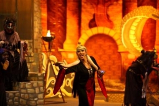 Stories from Middle East were also used. Story from the Middle East were also used. Stories from the Middle East became popular choices in a Bangsawan performance as it did not dwell into matters of the Islamic religion but more towards the elements of adventure and romance. Aladin with the Magical Lamp, Ali Baba and the forty thieves, Laila Majnun, Yatim Mustaffa, Jula Juli Bintang Tiga, Jula Juli Bintang Tujuh, Tajul Muluk are among the stories well-liked by the audience